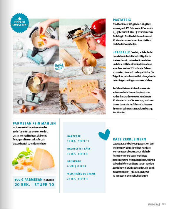 „ZauberTopf mixt – Das Basis-Kochbuch für Thermomix®“ vereint die wichtigsten Rezepte und Tricks des beliebtesten Zeitschriftentitels für Themomix® in Deutschland. Die Leser erhalten ein umfassendes Nachschlagewerk, das jeder braucht, der einen Thermomix® besitzt. Neben leicht verständlichen Erklärungen der 13 Funktionen der Küchenmaschine, genialen Tricks, wie man diese im Küchenalltag geschickt einsetzt und Ratgebern, die das gelingsichere Kochen zum Kinderspiel machen, sind natürlich auch die besten Rezepte enthalten.